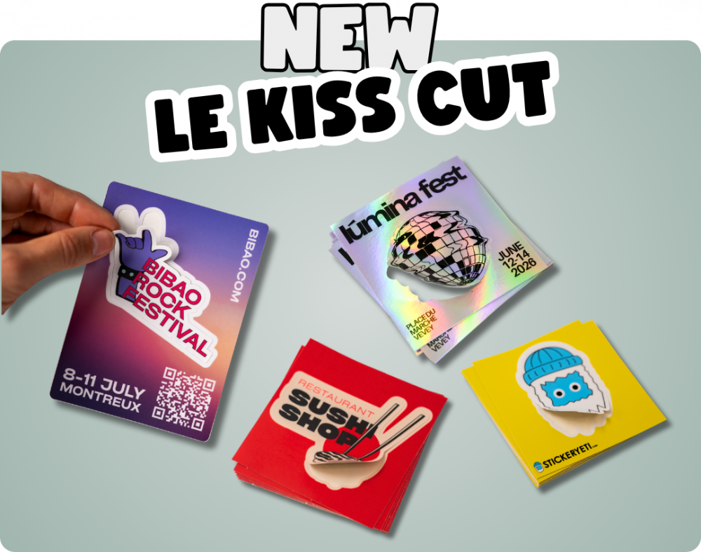 Plus faciles à décoller que nos stickers Die Cut, les stickers Kiss Cut, ou découpe mi-chair, débarquent chez Stickeryeti! Pratiques, fun et super stylés, ils vont faire passer votre créativité au niveau supérieur en transformant chaque autocollant en petit outil marketing malin.