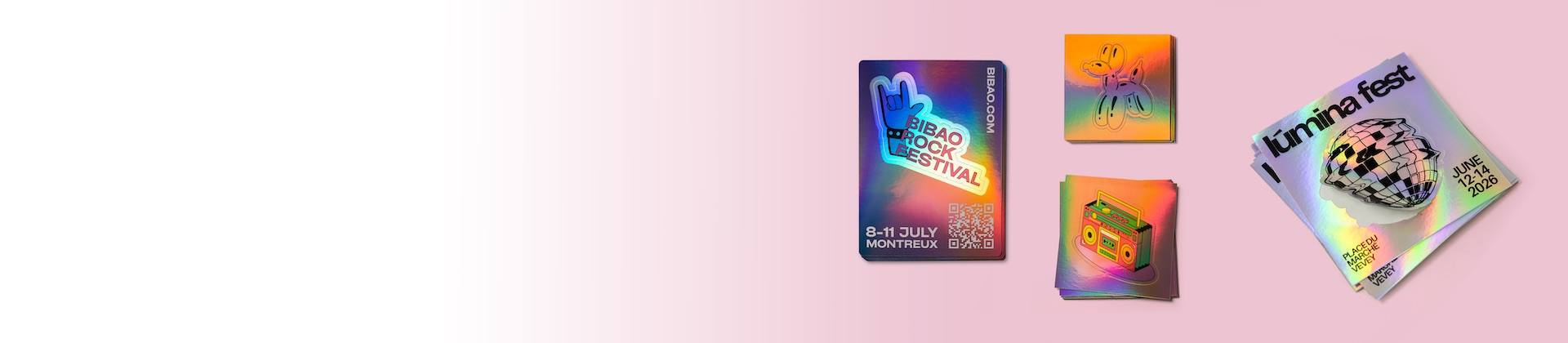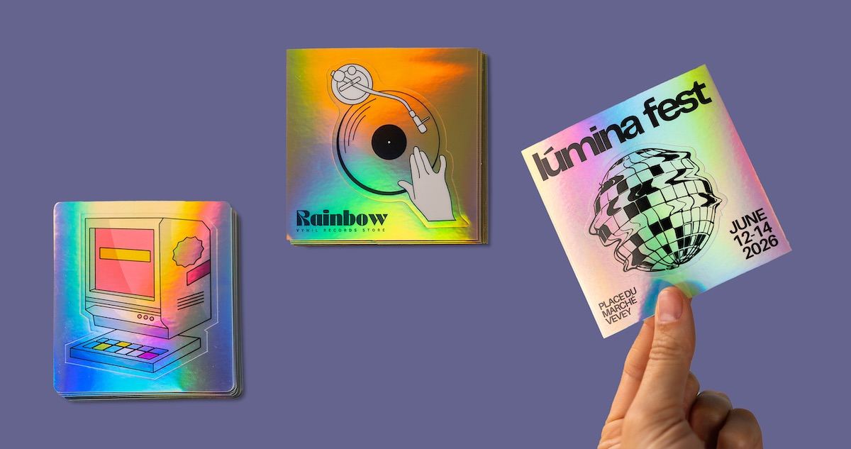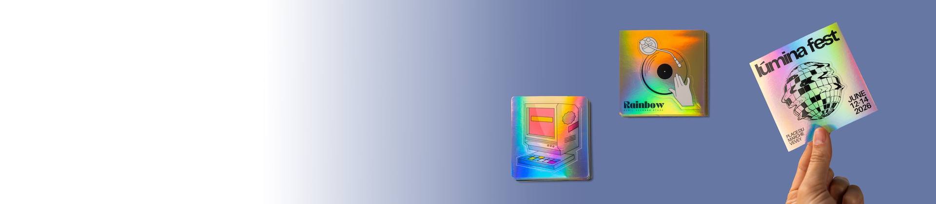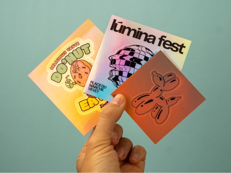 Les autocollants holographiques Kiss Cut (ou découpe mi-chair) sont une alternative originale et pratique ! Fabriqués sur notre vinyle holographique premium, ils adhèrent sur toutes les surfaces lisses et créent un effet visuel saisissant.